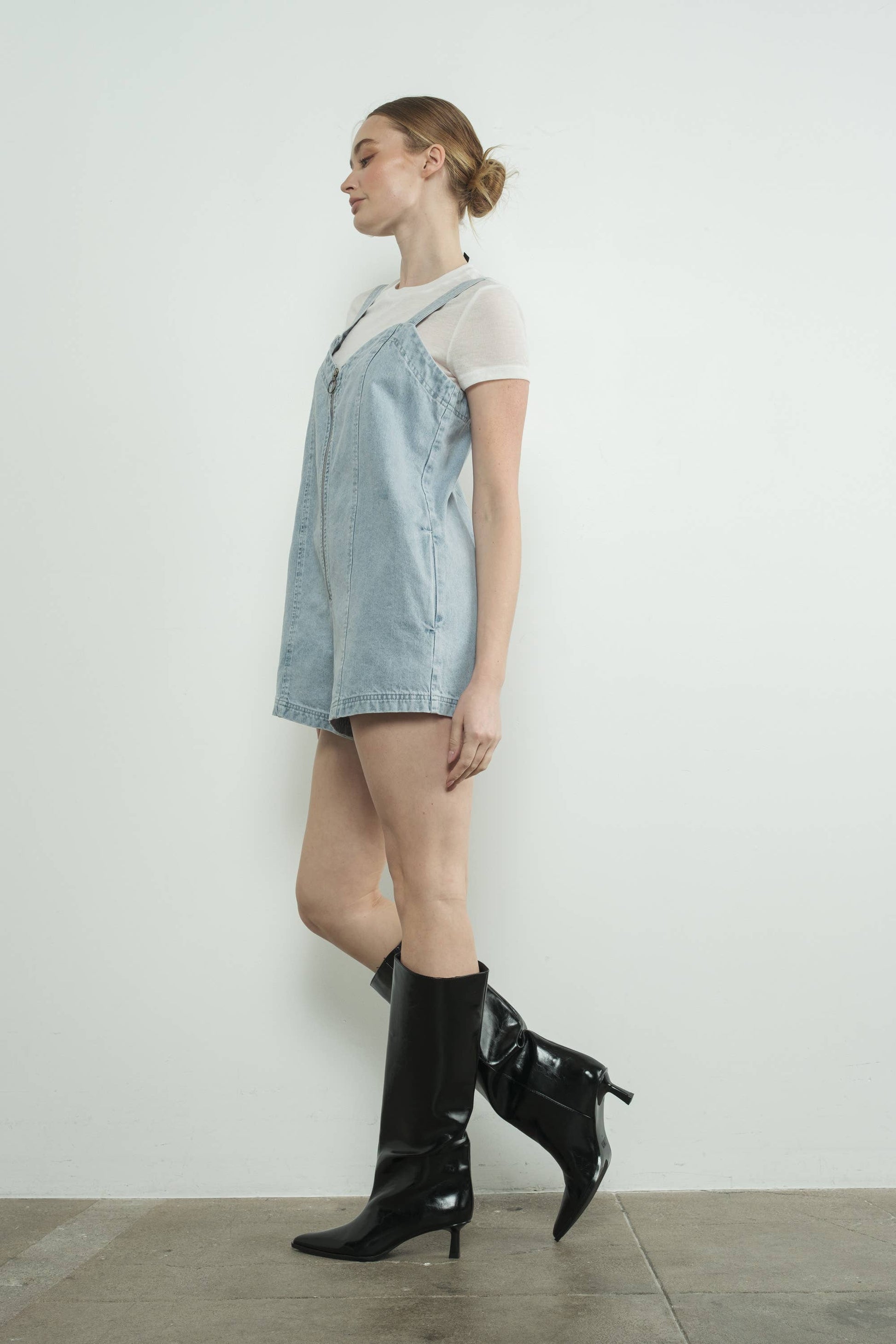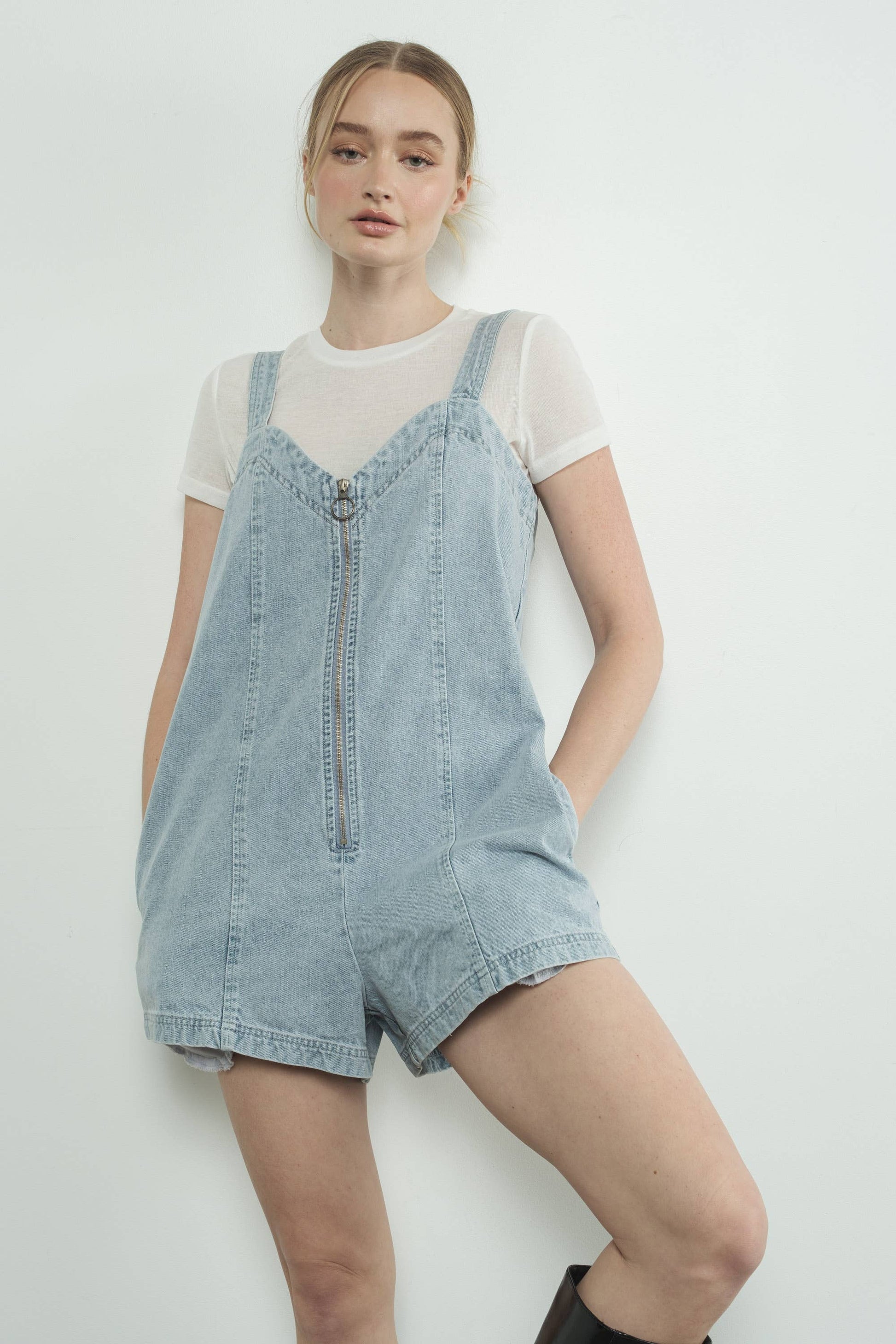 Effortlessly stylish and versatile, the Sweetheart Zip Romper adds a touch of denim to your wardrobe.