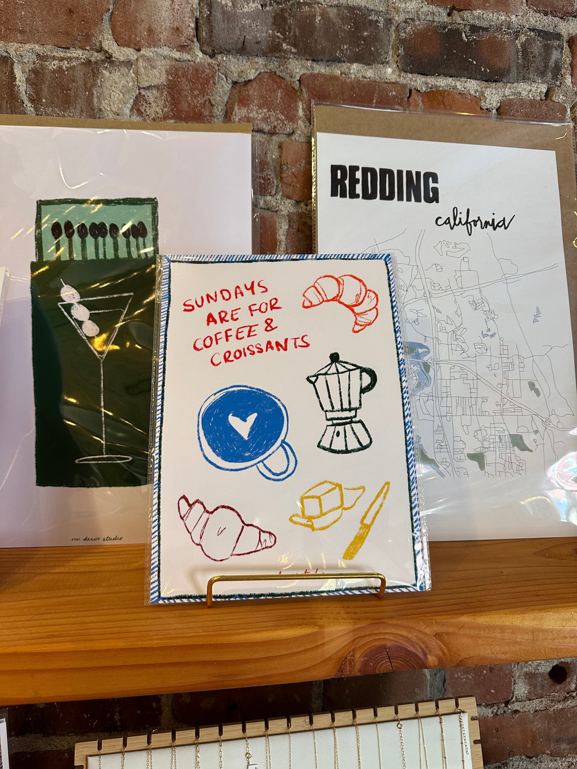 Get your daily dose of joy with our Sundays Are For Coffee and Croissants Print.