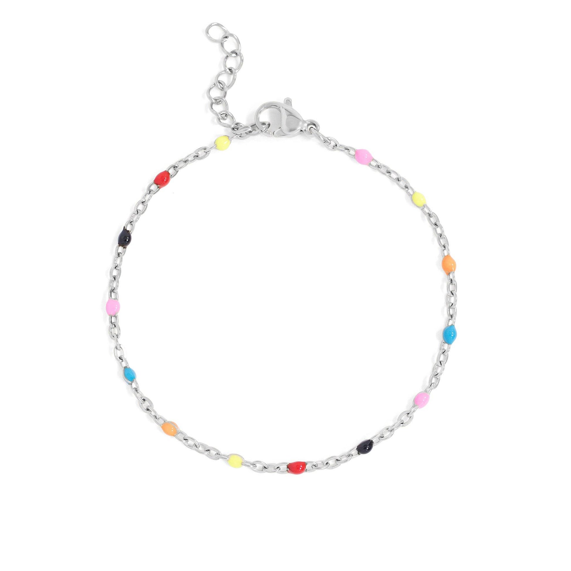Crafted from premium 18K Gold PVD stainless steel, this playful piece features colorful enamel accents that sparkle like scattered confetti. Waterproof and hypoallergenic, it resists tarnish and won’t turn your skin green. With a secure lobster clasp and adjustable length, it’s a fun, elegant touch for everyday wear or layering with your favorite bracelets.