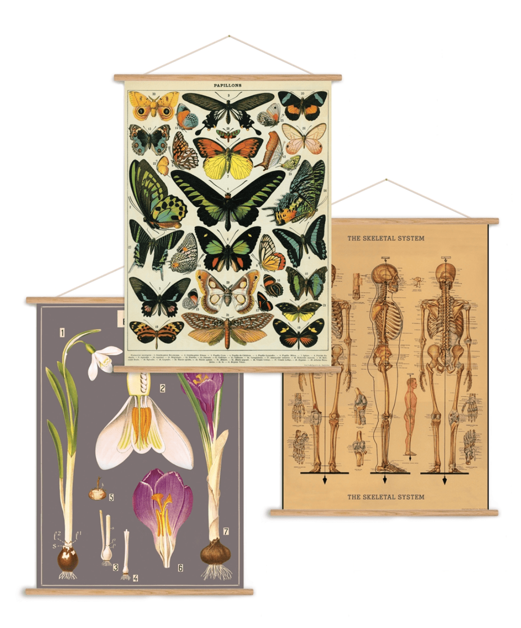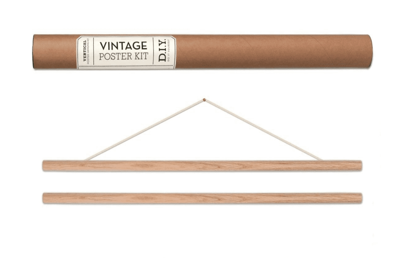 This do-it-yourself kit has everything you need to turn your favorite Cavallini poster into a vintage-inspired wall hanging. An easy alternative to framing, this kit will brighten any office or living space.