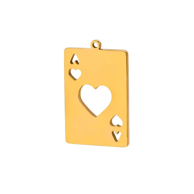 This 18k gold-plated stainless steel charm boasts a bold and stylish design, featuring the iconic Ace of Hearts symbol. Perfect for poker lovers or anyone looking for a playful touch, add this charm to your collection for a touch of elegance.