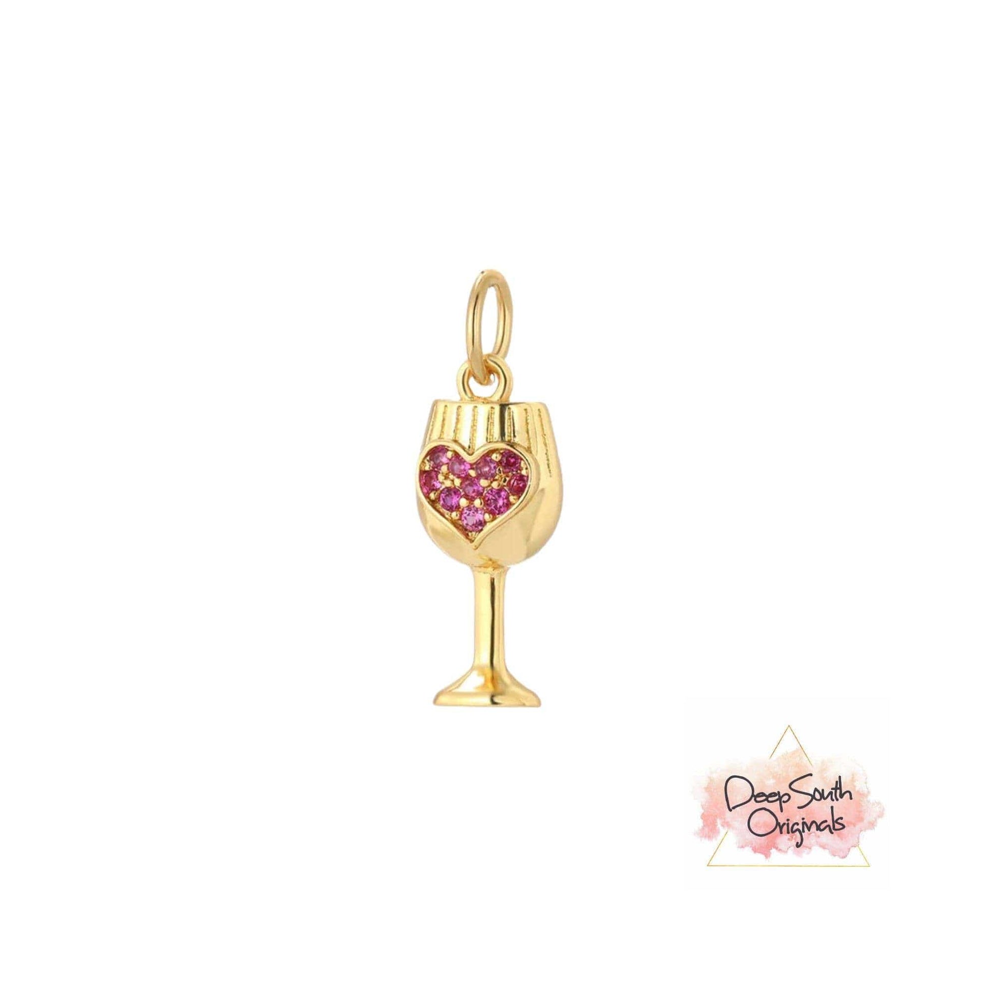 Add a touch of charm to your jewelry collection with the Wine Glass Charm with Heart.