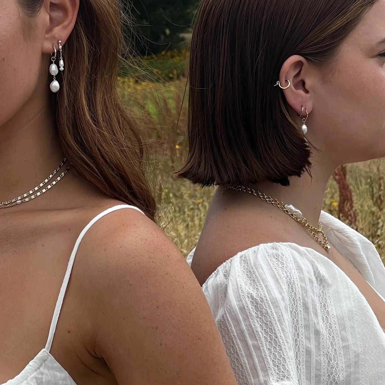 Add some glitz and class to your look with these dainty Gold Filled Double Pearl Hoops!
