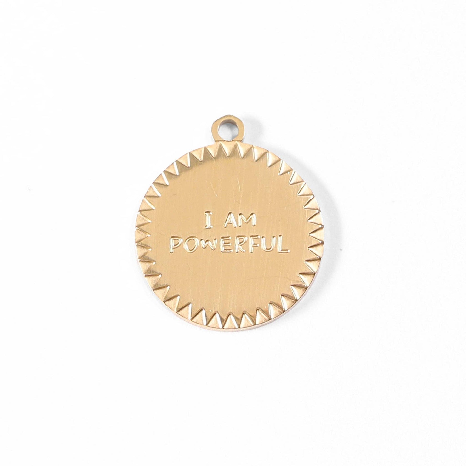 This inspirational charm is the perfect addition to your jewelry collection, serving as a daily reminder of strength and empowerment. Crafted from 18K Gold PVD coated surgical-grade stainless steel, it offers exquisite quality, style, and comfort for everyday wear.