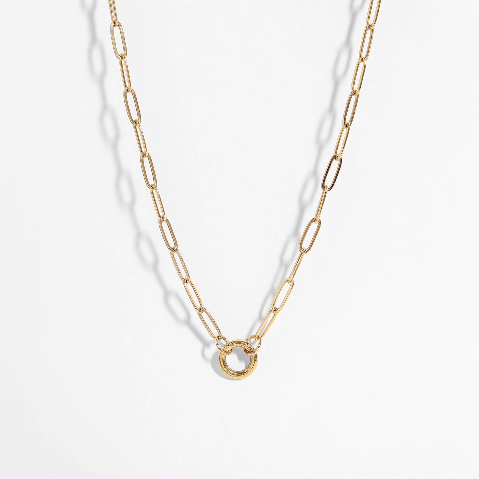 Elevate your jewelry game with our 16" Gold Stainless Steel Paperclip Charm Keeper Necklace!